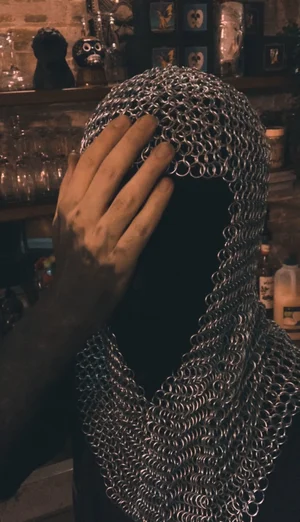 The attire of the band members: Connor rocking his threads whilst the rest of the band members, called “Inga” and “En”, wore somewhat similar clothing, whilst retaining a dark, albeit odd, mysterious Yin and Yang identity. Not to mention their drummer, known as “The Shells Face”, performing with a mask and hood. Now, here is the real kicker of the performance, three vocalists, and one drummer! This confused but intrigued the audience, as guitars and bass were on the backing track.